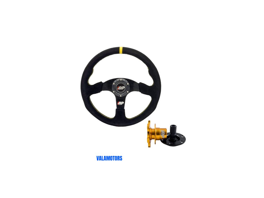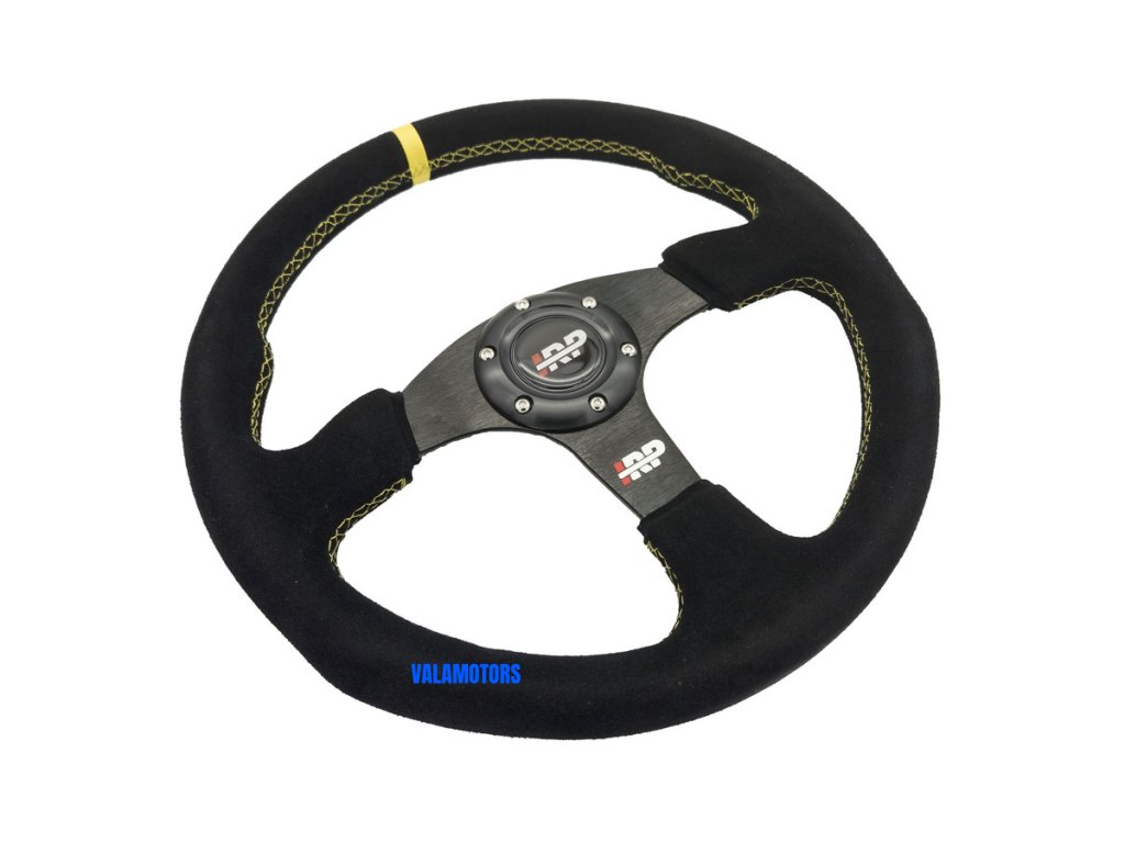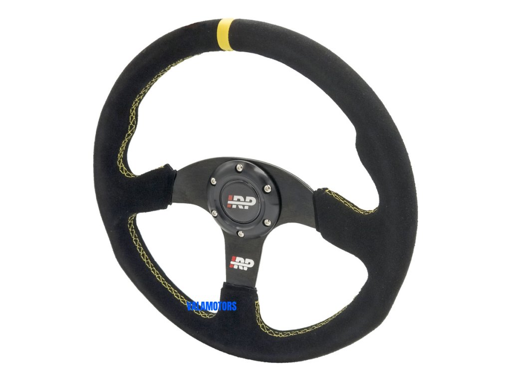 Sportovní semišový volant 350 mm plochý IRP Vysoce kvalitní semišový volant IRP Průměr: 350 mm Offset: plochý Okraj: oválný Počet ramen: 3 Hmotnost: 1100 g Materiál: semiš Ozdoba: Žlutá nit Barva ramen: černá Vysoce kvalitní semišový volant IRP je produkt pro nejnáročnější nadšence motoristického sportu. Volant je vyroben z vysoce kvalitního hliníku s potahem semišové kůže. Je navržen pro zlepšení ovladatelnosti. Průměr volantu je 350 mm, což zajišťuje vynikající kontrolu nad vozidlem. Dvě přídavné výstupky zlepšují komfort řízení.